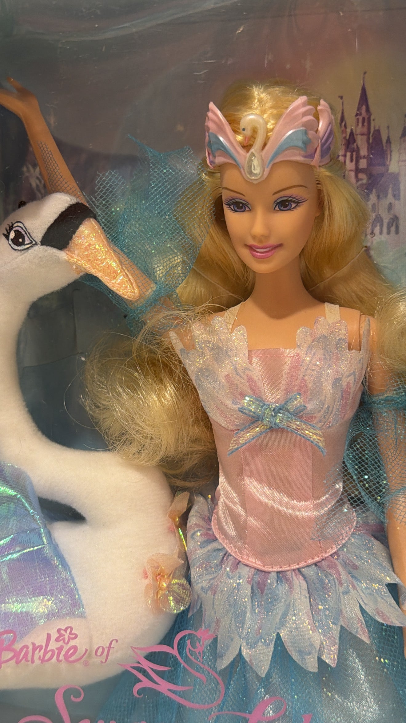 Barbie released a simpler version of the Swan Lake Barbie around the same time, without detachable wings or the swan accessory. She still wears the same icy blue gown and tiara but lacks the transformation feature.