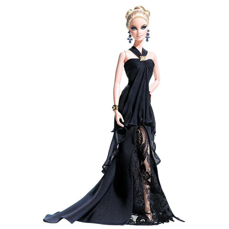 On Hollywood's biggest nights, only E! captures all the glitz, glamour, and excitement with Live from The Red Carpet. Now, Barbie® doll makes her debut on the Red Carpet with E! wearing a stunning custom gown created by acclaimed designers Mark Badgley and James Mischka. Cameras flash and fans cheer as Barbie® makes her entrance in this dazzling Badgley Mischka gown in midnight blue inset with elegant lace and accented with a precious golden brooch, bracelet and ring. A member of Hollywood royalty, she'll have everyone asking Who are you wearing?