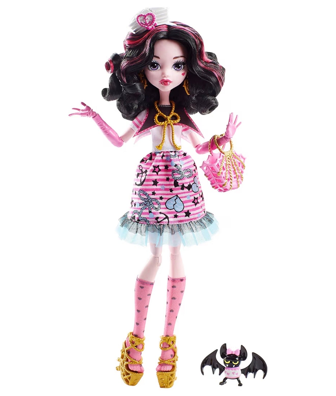 - Draculaura doll daughter of Dracula is decked out in a nautical-themed outfit that makes a splash