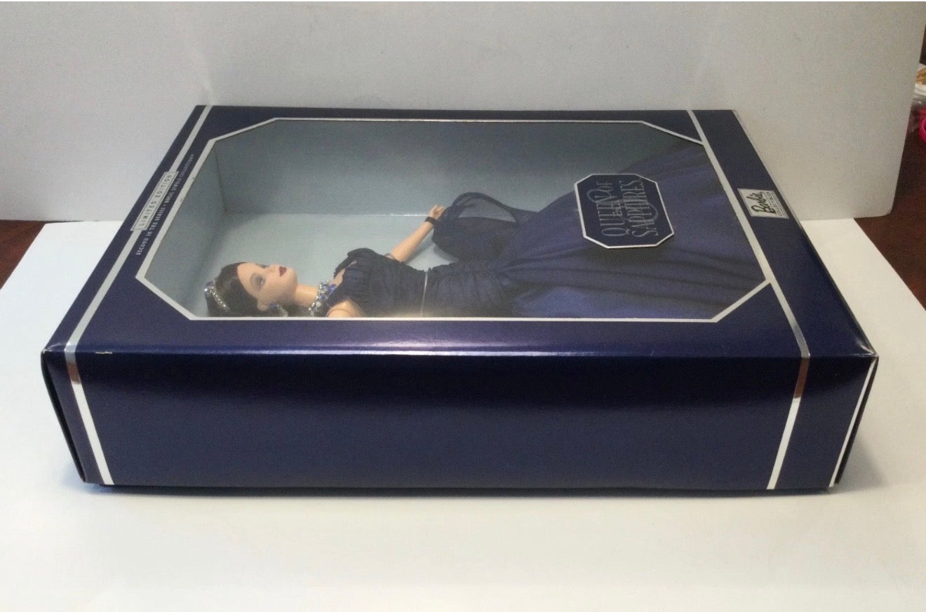 The second glorious doll in a series celebrating the magnificence of precious stones. Queen of Sapphires™ Barbie® doll's jewelry has been created by Alfred Durante, a master jewelry designer who has been commissioned to do custom jewelry for some of the world's most celebrated women. The Queen of Sapphires Barbie® is adorned in extravagant diamond and sapphire-colored Swarovski® crystals brilliantly highlighted by elegant marquis, teardrop and round cuts. The craftsmanship and detail on her tiara, necklace and earrings are simply exceptional.