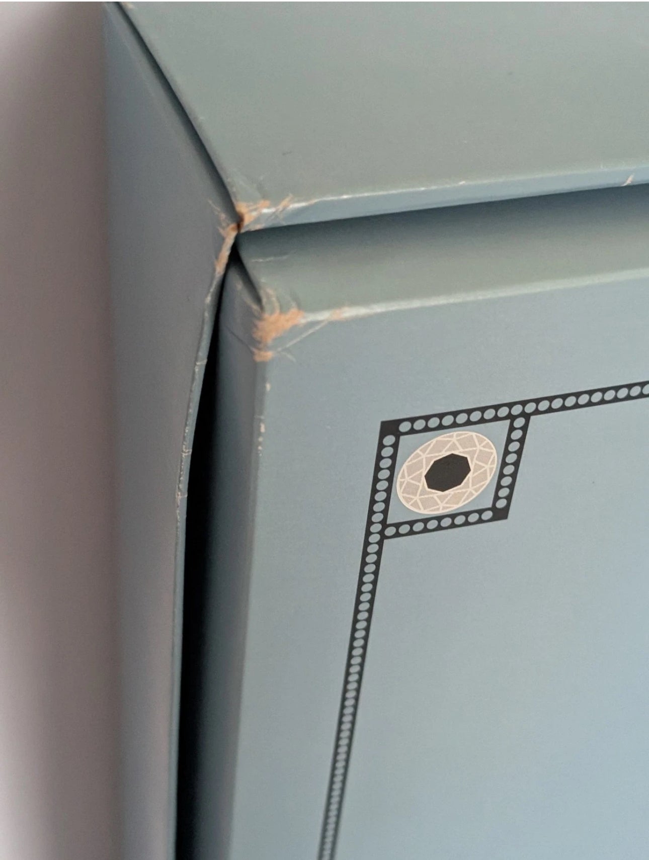 She has never been removed from the original box. However, the box is showing signs of natural aging.