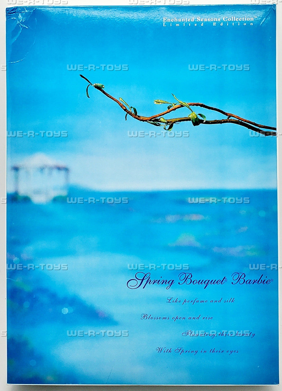 What better way to herald the coming of spring than with the beautiful Spring Bouquet™ Barbie® doll from the Enchanted Seasons Collection®. Sheltered from the sun in her wide-brimmed pink hat with pastel blue trim, Barbie's ready for a day of fun. Her cascading blond hair and flowing pastel floral print dress make Barbie® as lovely as the hand-picked flowers in her white basket.