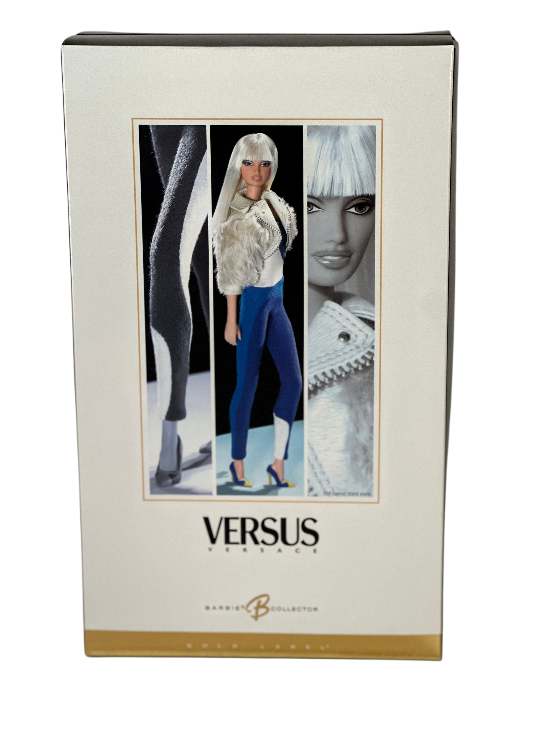 Versus is the youthful cutting edge Versace brand that bridges the gap between the energy of street culture and high fashion with designer clothing, accessories and fragrance. Versus Barbie® doll wears a bold knitted jump suit with artful color cutouts and an ultra-short faux fur jacket. Innovative, modern and fun, Versus Barbie® doll is all about contemporary fashion.